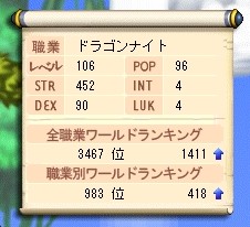 苦節、メイポ生活数年に渡って初めて持ちキャラに100レベが誕生しました。