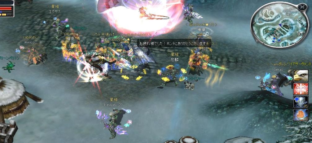 俺はチキンと化してこの異様に遠い間合いを維持しながら、ひたすらみんなにヒール配ってました(笑)