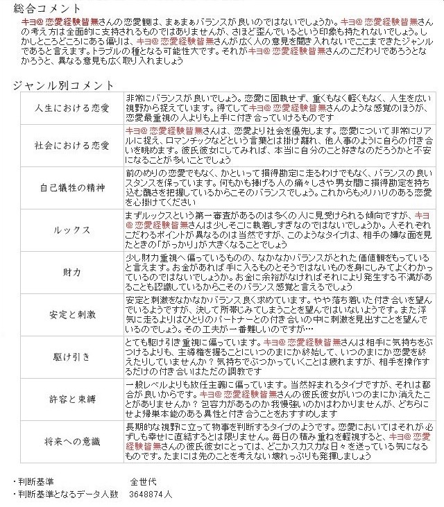 ちなみに俺の診断結果は「ほぼ恋愛未経験」でした。